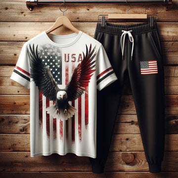 This set includes a t-shirt and pants. They are made of cotton Rich Fabric.