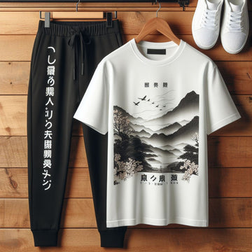 This set includes a t-shirt and pants. They are made of cotton Rich Fabric.