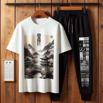 This set includes a t-shirt and pants. They are made of cotton Rich Fabric.