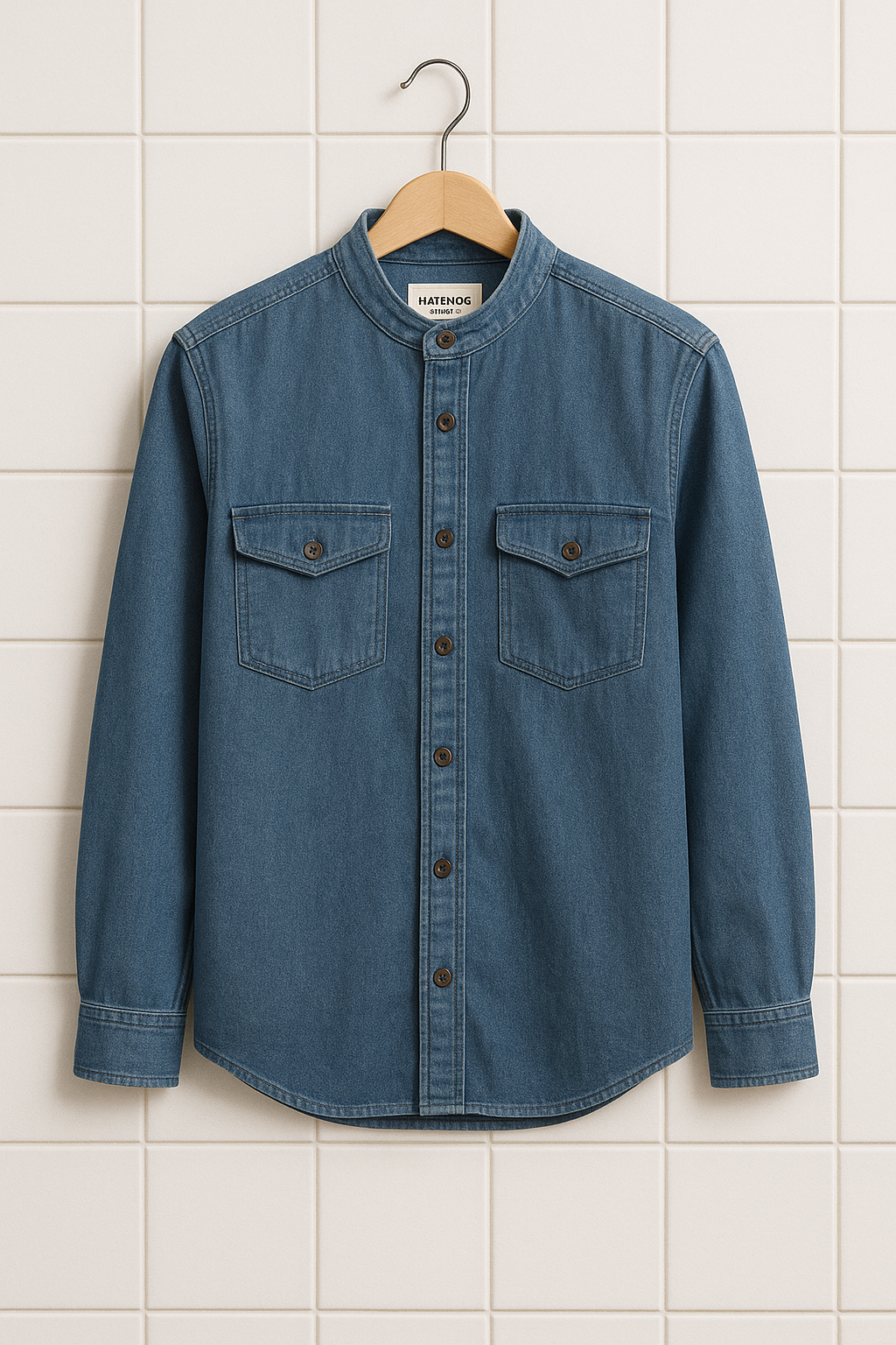 Mens Cotton Chambray Denim Pocket Detail Shirt HATMS28 - DB