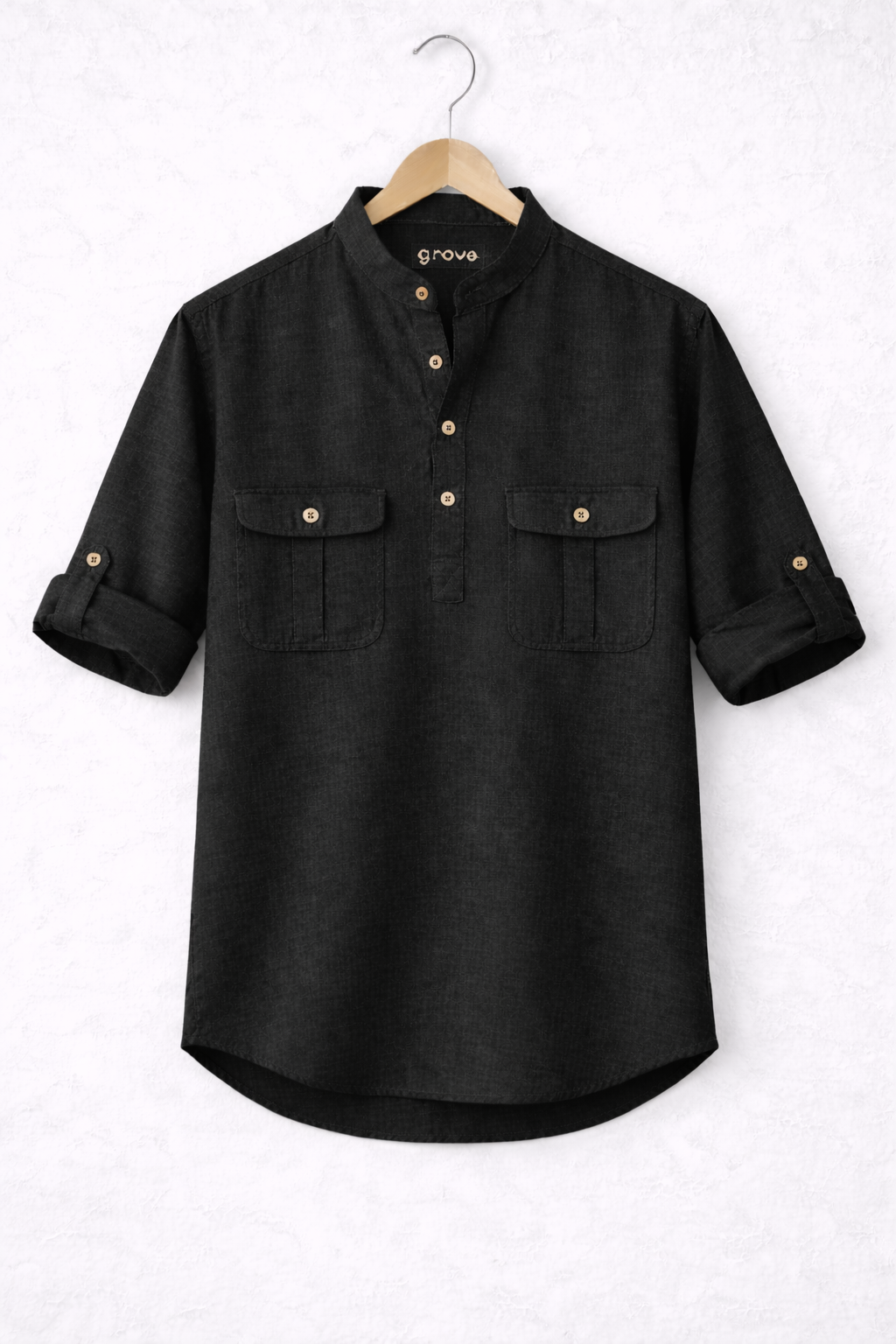 Mens Cotton Detail Shirt GRVCS249 - Black